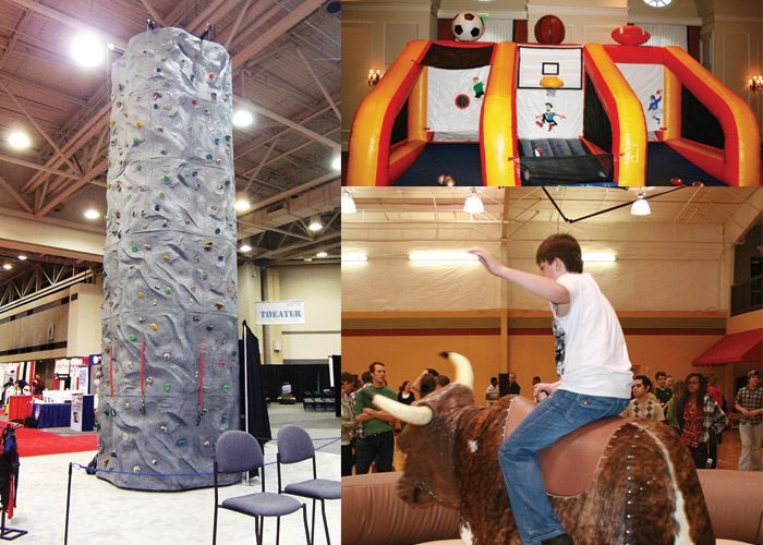 Our corporate division specializes in conventions, trade shows, national tours and a variety of other high profile events. We offer a wide variety of products that work well in the corporate arena, including mechanical bull riding, wax hand machines, sports games, interactives, and indoor rock climbing walls from 12’ to 25’ to accommodate a variety of venues.